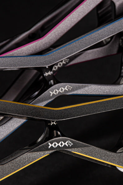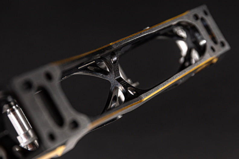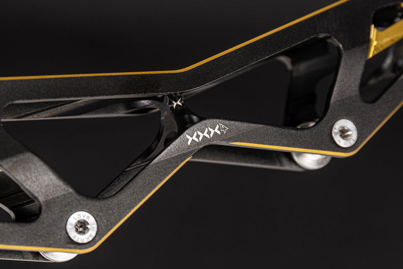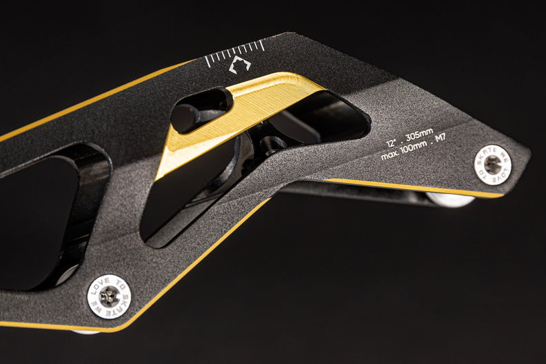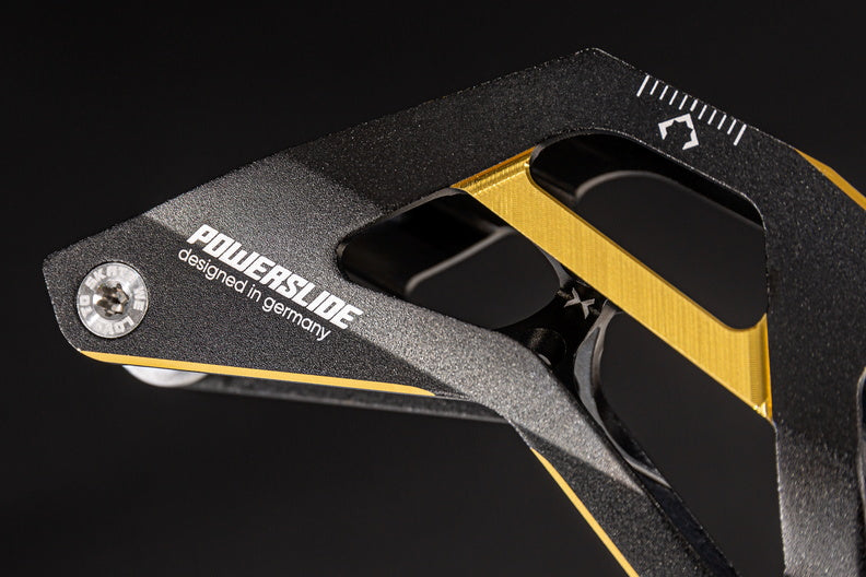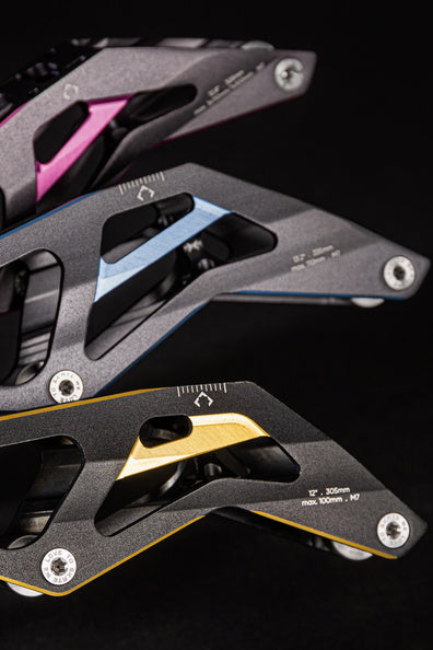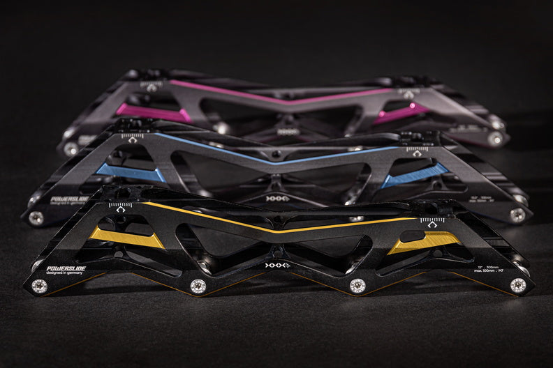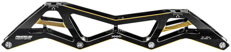 Known far and wide as one of the most successful collection of inline race and speed skate frames ever, the 3X family of frames keeps progressing and getting better. For unmatched speed, performance, and style, you can’t go wrong with the 3X4 110 - 13.2 Black Gold frame from POWERSLIDE. This high-performance frame is engineered around the 195mm mountains standard and Incorporates only the highest quality material and features. The frame is produced by extruding and CNC machining aerospace aluminum to ensure the frame is lightweight and meets the performance demands of the world’s best inline racers. With a length of 13.2 inches/335mm and able to fit 4x110mm wheels this frame is built for maximum speed and performance. To augment your individual skating style, the frame is compatible with POWERSLIDE's Pitch and Stride Control which corrects physical malpositions and optimizes performance. For unmatched inline speed and racing performance, give the POWERSLIDE 3X4 110 - 13.2 Black Gold frame a try and discover what you’re truly capable of on inline skates. Black Gold not your color? The frame is also available in titanium blue.