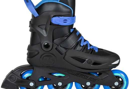The Powerslide Stargaze Black adjustable kids skate with its fresh looking appearance shows big fun potential. The base for this all round skate is the sleek unibody construction, while the shell and frame are made of one piece in order to reduce the overall weight by using less hardware and improve the power transfer. Using less parts also means the ecological footprint of the skate is smaller for a better environment. The rigid shell provides great support to help kids to learn to skate. A very comfortable liner featuring a stretch toe grows with the kids feet allowing them to enjoy their skates for multiple seasons. This nice skate package gets completed by smooth rolling Powerslide ONE PU- wheels and Wicked ABEC 5 bearings. The Stargaze is made for all kind of action on wheels - kids can just cruise around, play hockey or use them to commute to friends.