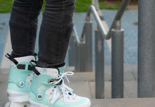 The best female aggressive skater in the game deserves a high-performance skate that matches her style and advanced skill level. USD is proud to release the AEON 60 Mery Muno Pro Model. Based on the legendary AEON collection of aggressive skates, the skate has been upgraded to Mery’s exact specifications. “For my pro-model skate, I’ve chosen the AEON for its unique lightweight design. The unibody frame-boot concept gives me an exceptionally low centre of gravity, making the skate feel super stable. The USD design team and I created a skate I can identify myself within through the intricate details we added. Firstly, I’ve been using the aluminium buckle for over 2 years and never broke one so far so knew I had to have one on my pro model. Secondly, for extra support I added an additional 45-degree buckle across the instep, I also added extra thick laces and a soft leather upper portion to create the most supportive wrap-around feeling ever in a 60mm Aeon. The leather top also gives the skate a nice sneaker-style look. I chose light turquoise and white as they’re my fav colour combination and I added my own personally designed little ninja logo to represent myself. My skate also features the new second generation, taller height-adjustable AEON cuff, providing the perfect flex for topsides but also allowing for more comfortable and longer skating sessions. For the liners, I added the 2nd Skin MYFIT liner because it’s super comfy and the tongue gives me a similar feeling to wearing a USD carbon skate. To keep me going as fast as possible my skates come with WICKED Abec 9 bearings and an exclusive USD wheel (60mm 88a) on which we added one of the most classic Spanish expressions on the wheel’s design... go and find out!" - Text by Mery Munoz